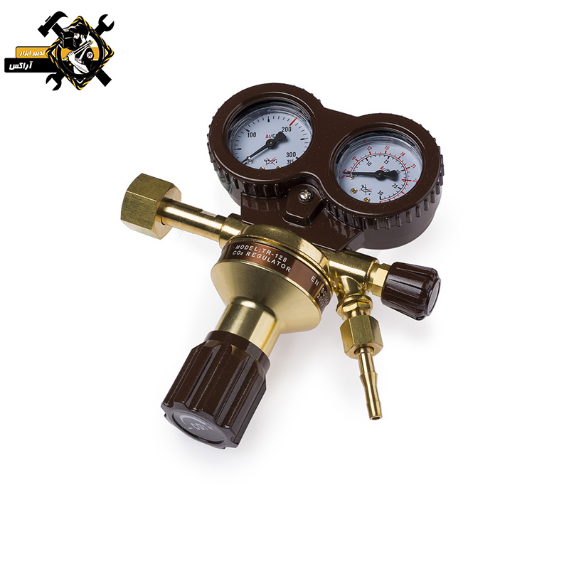 مانومتر TR-128 بامغزی و بدنه تماما از برنج صیقل داده شده است. در نتیجه این مانومتر در برابر اکسید شدن و در معرض دی اکسید کربن قرار گرفتن بسیار مقاوم است. مانومتر co2 دارای سوپاپ اطمینان است. فشار ورودی این محصول ۲۱۰ بار و فشار خروجی آن ۵/۵ در ۲۳ لیتر بر دقیقه است.